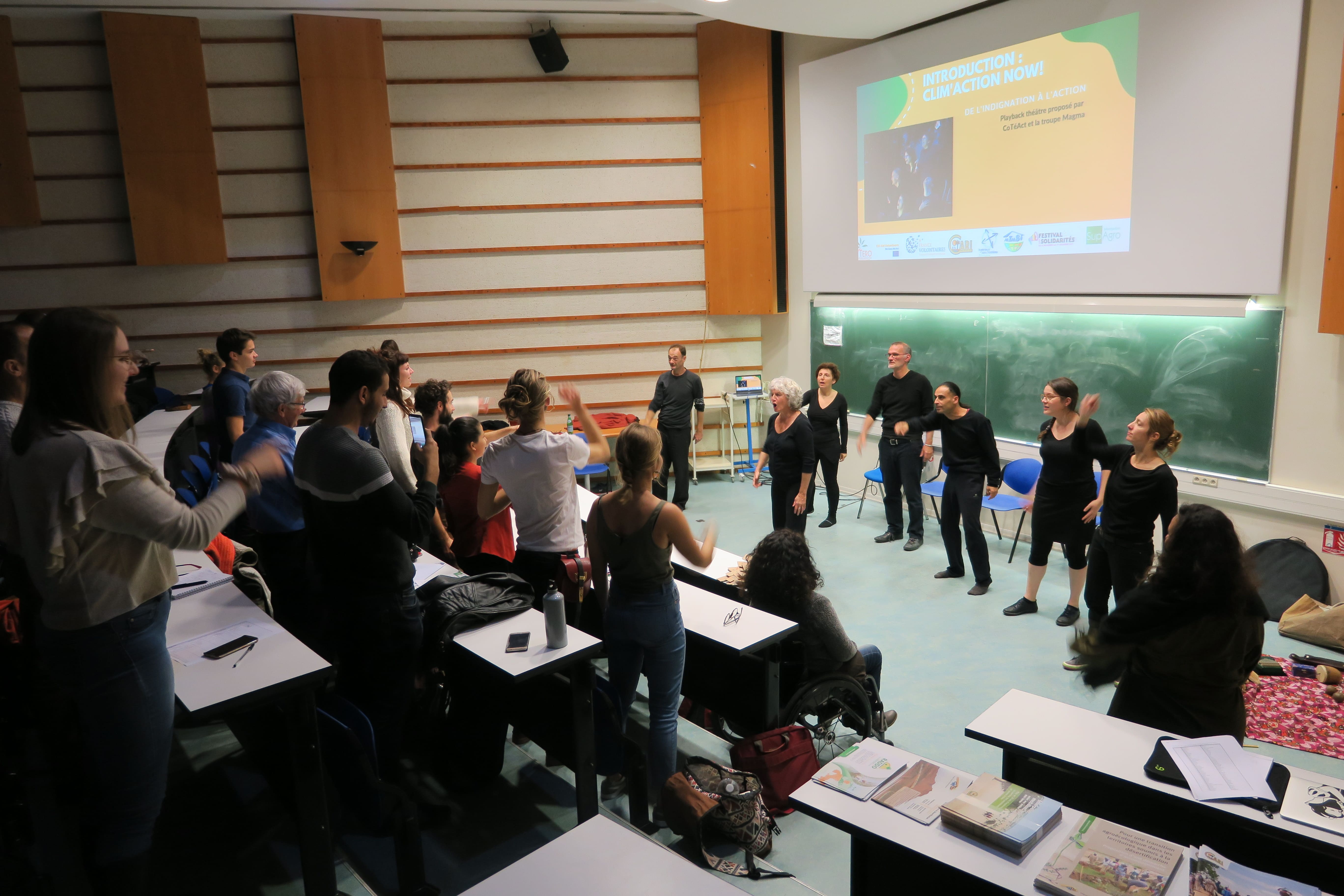 A travers la mèthodologie du teatre-action et du débat, on a discuté autour de l’engagement citoyen pour la planète, en proposant aux jeunes qui ont participés des pistes de réflexions pour l’action.